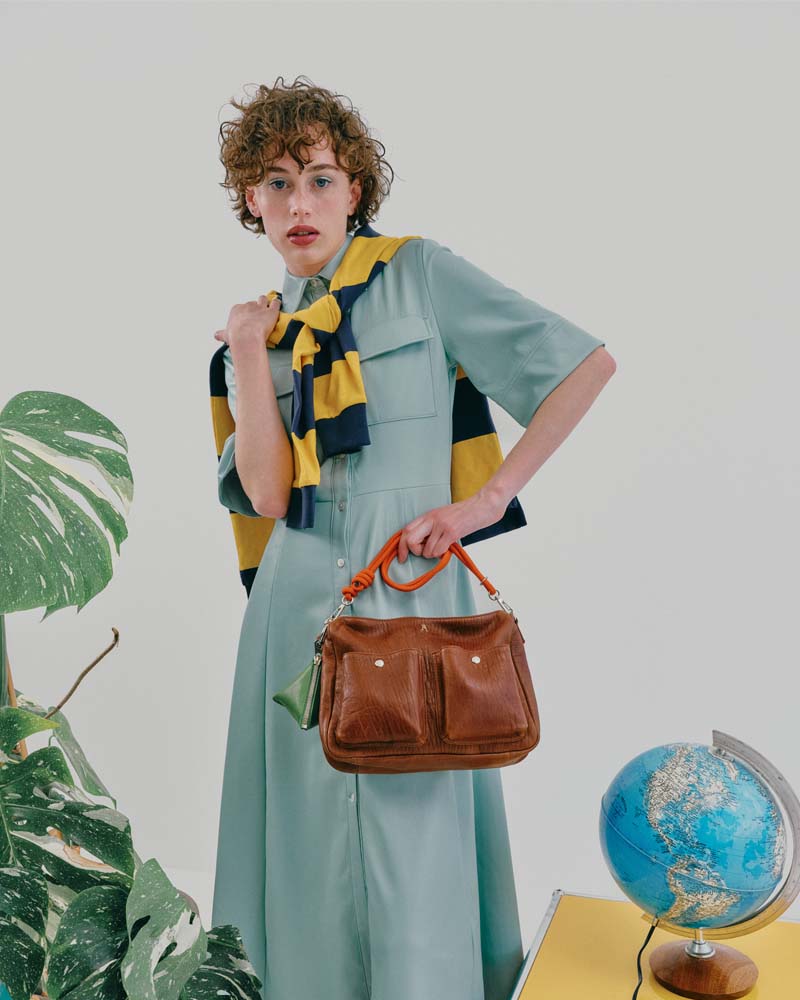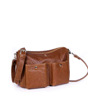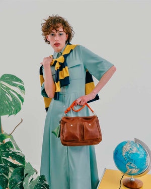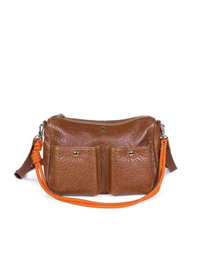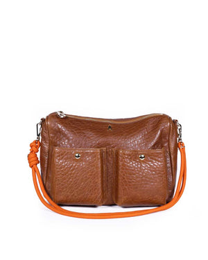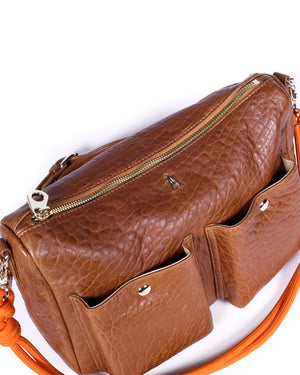 Sac avec 2 poches externes / 2 bandoulières cuir + corde / cuir bubble