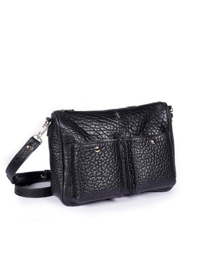 Sac avec 2 poches externes / 2 bandoulières cuir + corde / Cuir bubble