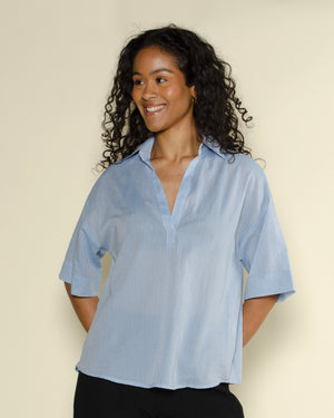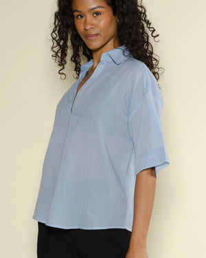 Une chemise Tifana de couleur ciel et de la marque Diega. Une chemise Tifana fluide et confortable grâce à sa composition 100% coton. On adore la couleur ciel de la chemise, idéale pour une tenue bohème chic !