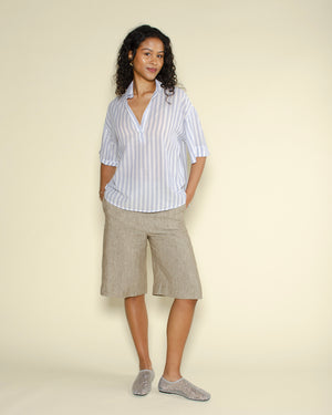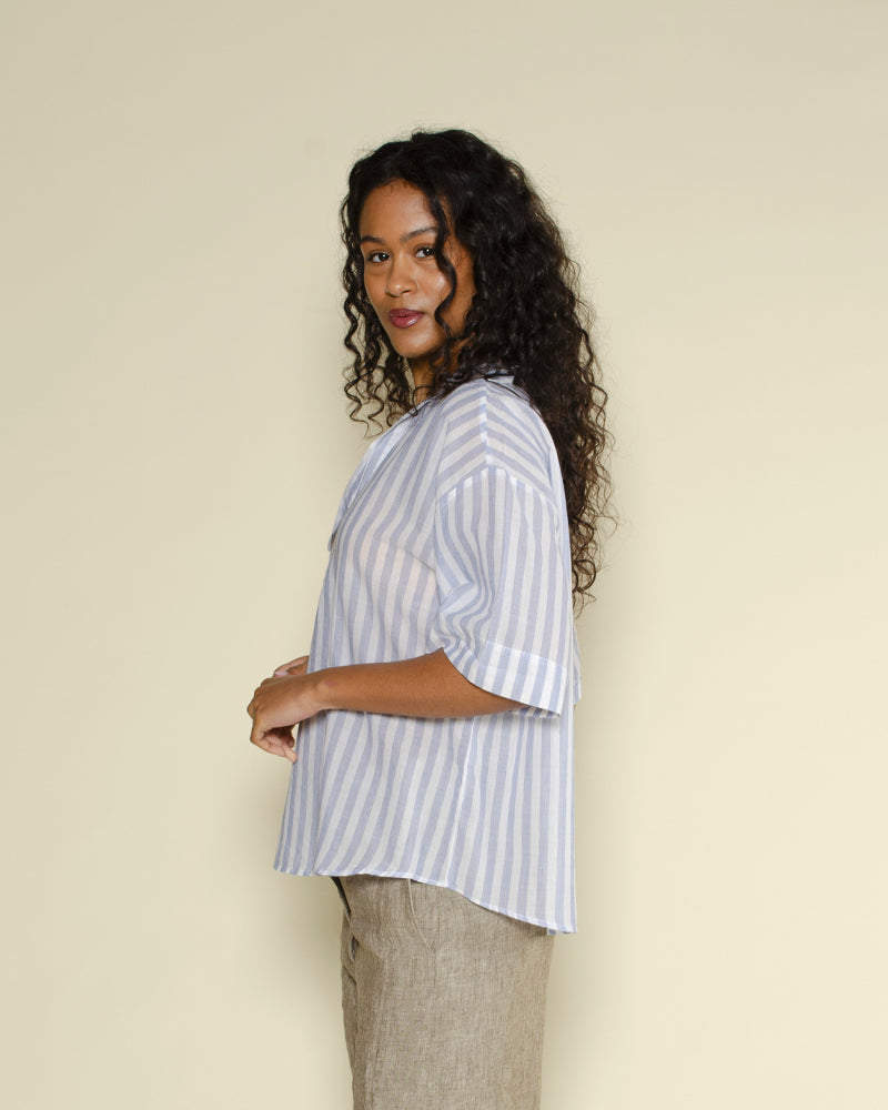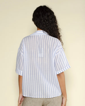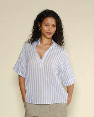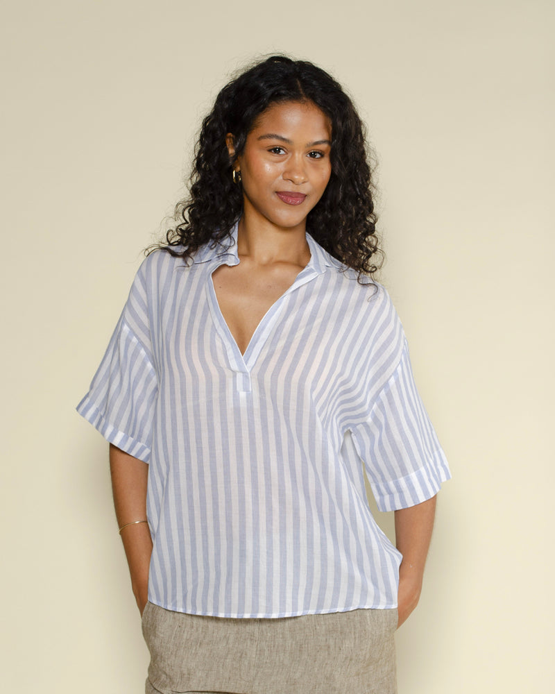 Une chemise Tifana de couleur bleu clair et blanc rayée et de la marque Diega. Une chemise Tifana fluide et confortable grâce à sa composition 100% coton. On adore le motif rayé de la chemise, idéale pour les soirées d'été !
