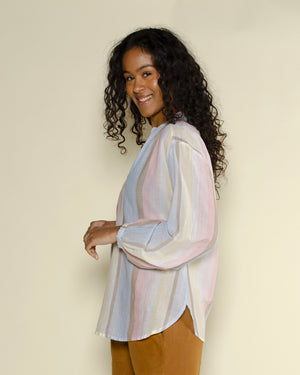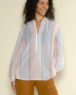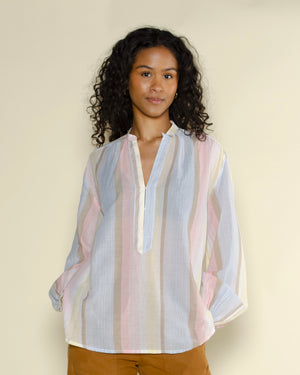 Tunique en coton à rayure avec col ouvert décolleté et manches légèrement étroites de la marque Diega. On porte ce top avec un jean flare pour un look casual !