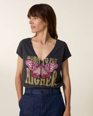 Une t-shirt fluide et original, c'est ce qu'il vous faut dans votre garde robe ! Ce papillon brodé avec des paillettes vous portera chance, retrouvez la collection Léon & Harperici !