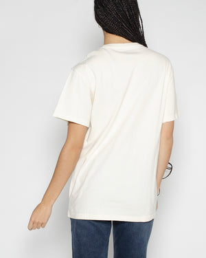 Le t-shirt birdy a une inscription sur l'avant "Let me drive fast my life" avec un symbole d'oiseau et des ailes. La couple est manches courtes, col rond et ample pour femme. Les badges sont toujours présents, un symbole signalétique de la marque. Il existe aussi en camel
