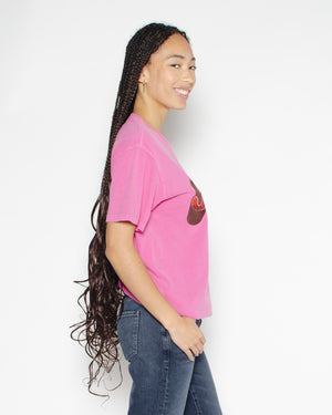 Un tee shirt col rond avec une coupe ample pour femme. Le tee-shirt est manches courtes et original avec son inscription "Joy" et ses badges sur l'avant du t-shirt. Un tee shirt à la fois simple et pop !