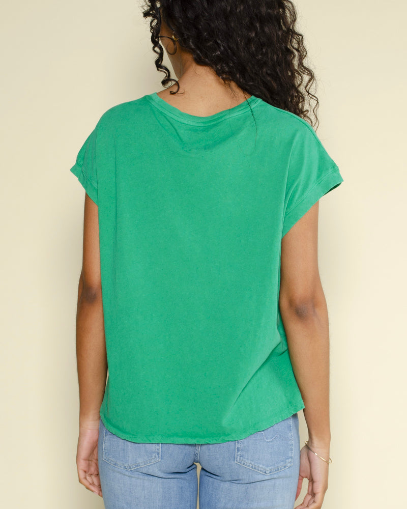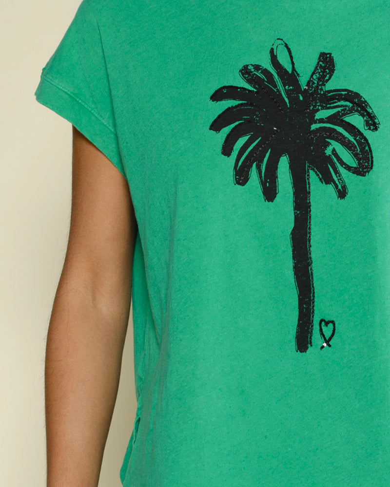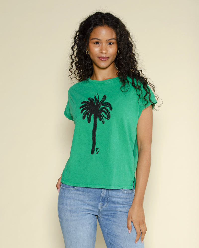 Tee-shirt pour femme de la marque Five. Ce tee-shirt avec un grand palmier au centre est parfait pour la saison estivale. On adore son côté tropical qui nous donne envie de voyager ! Son coloris vert lui donne du peps !
