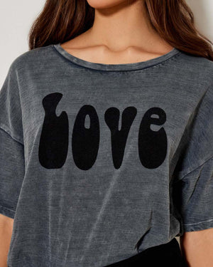 Le t-shirt "Love" gris à manches courtes de chez Five. On craque pour son imprimé LOVE sur le devant et pour sa coupe ample tendance. Ce t-shirt pour femme possède un col rond et des emmanchures raglans. Une pièce passepartout pour cette saison automne hiver.