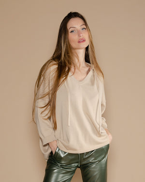 Pour vos looks décontractés ou pour décaler vos tenues du quotidien, le pull à capuche Hana San est parfait ! Vous trouverez une ouverture dans le dos pour le détail original !