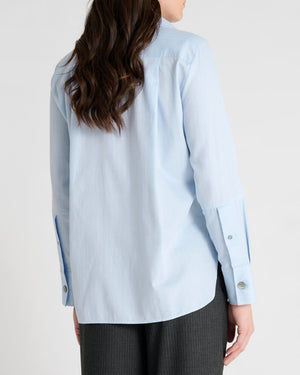 Chemise en twill chevron de coton bleu ciel / Col classique / Fermeture dix boutons / Poignets resserrés fermés par deux boutons