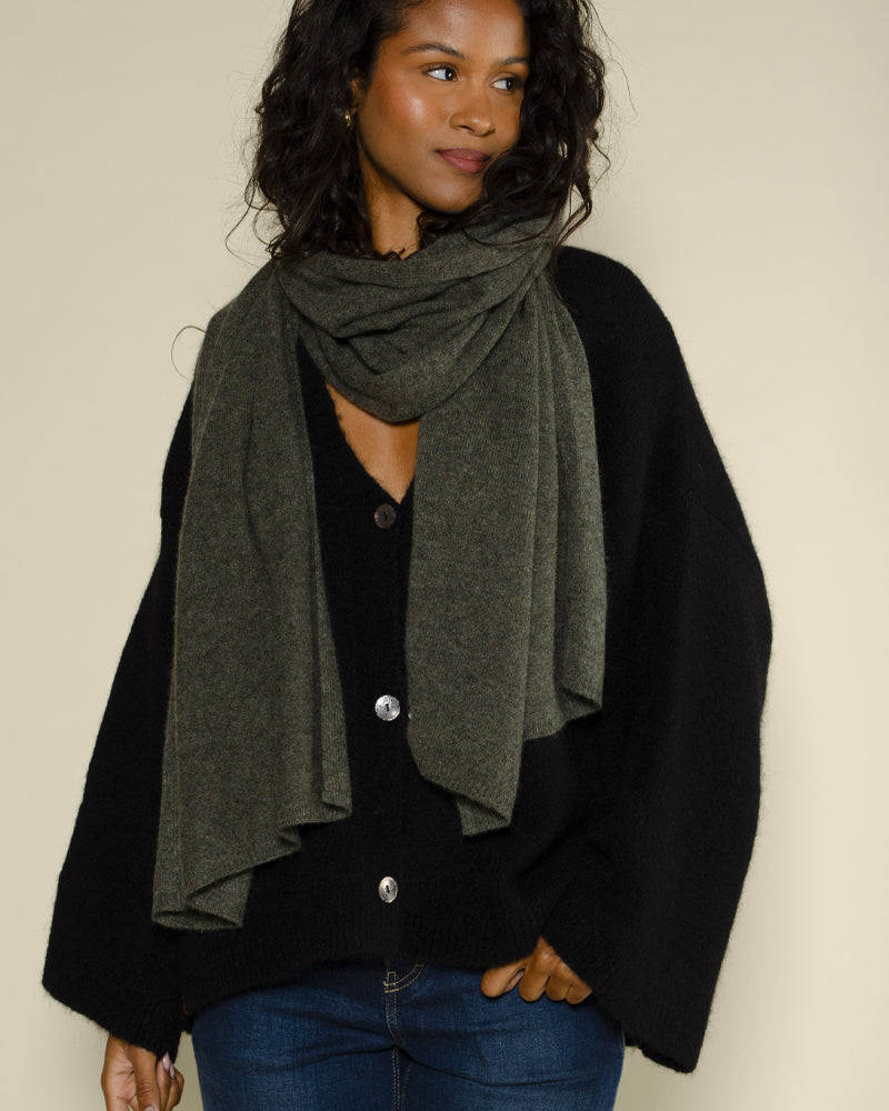 Sobriété chic et confort absolu / pur cachemire douceur enveloppante / qualité haut de gamme / teinte kaki foncé, élégante et polyvalente, complète facilement vos tenues