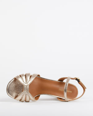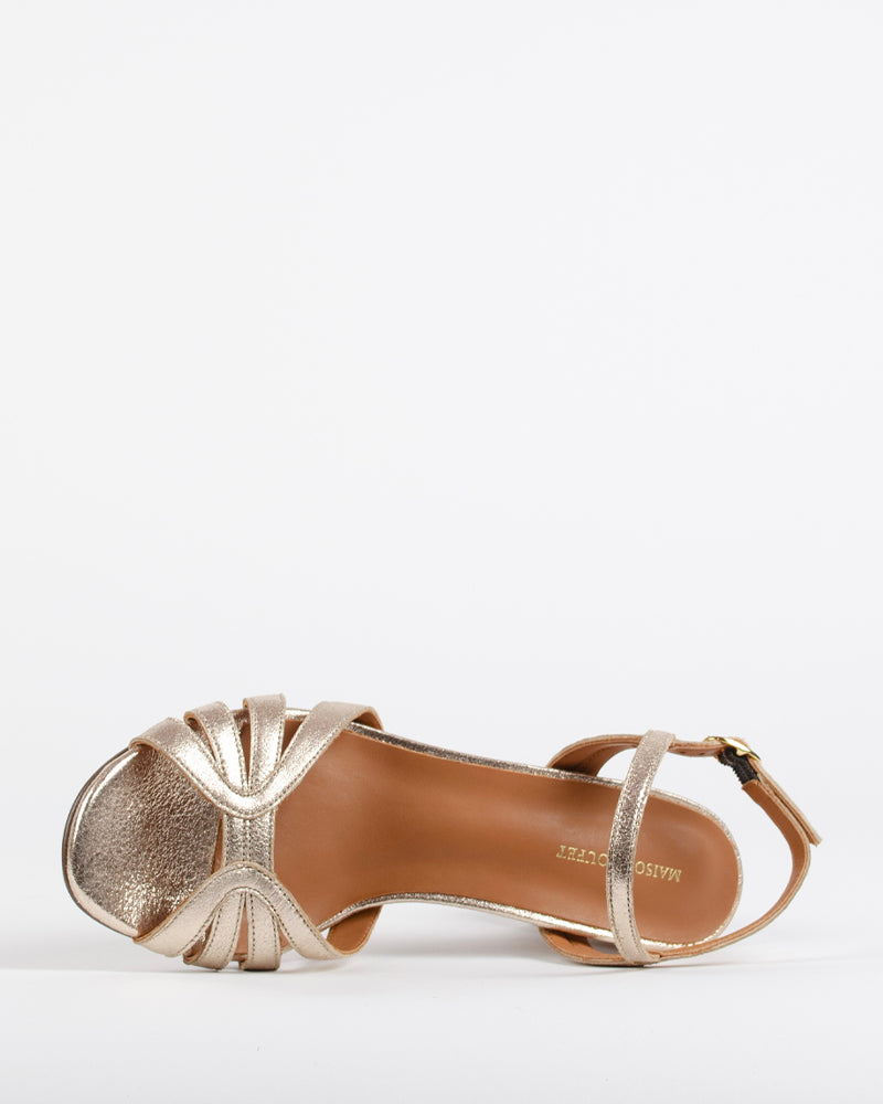 Escarpins en cuir, dorés, de la marque Maison Toufet. Ces escarpins ouverts sur le pied, avec leurs lanières croisées, sont le must-have de l'été. Alliant confort et style, ils se marieront parfaitement avec l'ensemble de votre garde-robe estivale. Idéaux pour créer un look aux inspirations andalouses, ces escarpins Maison Toufet apporteront une touche de chic et d'originalité à vos tenues estivales.