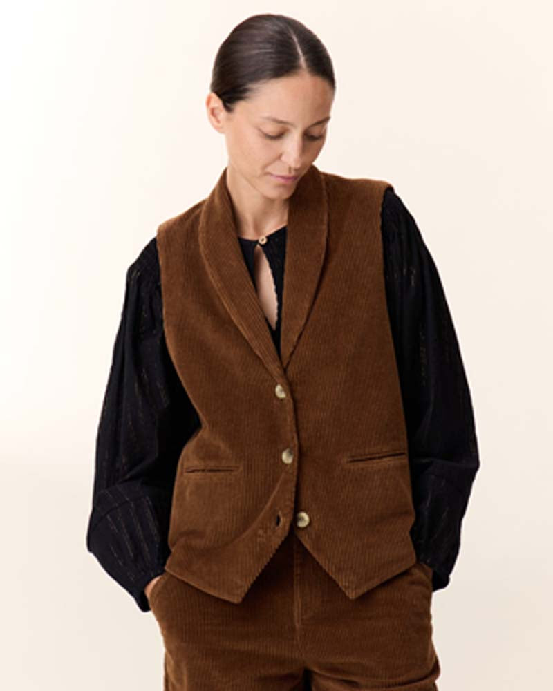 Coupe droite / Col revers / Effet velours côtelé / Fermeture boutonnée / Poches avant droites