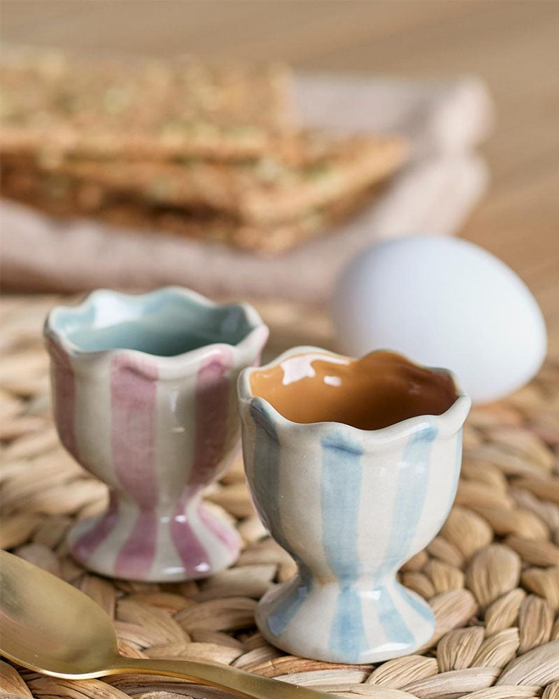 Un jolie joli duo de coquetier fait à la main de la marque Bloomingville. On adore son authenticité avec ses rayures peintes à la main et son vernis qui lui apporte une touche glossy ultra tendance ! Un duo adorable qui ajoutera du charme à votre décoration – difficile d'y résister !