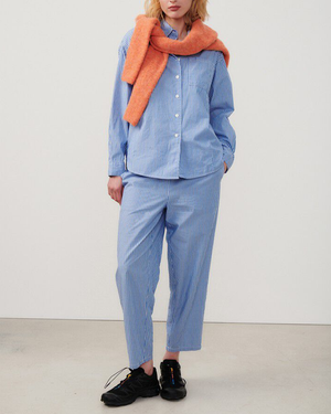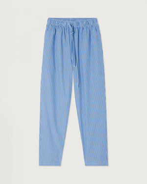 Un pantalon fluide pour femme rayée bleu et blanc de la marque American vintage très facile à porter avec votre garde robe estivale. Un pantalon intemporel qu'il vous faut dans votre dressing ! Retrouvez ici la chemise assortie.