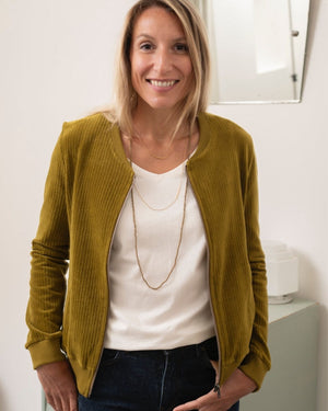 Le ZIPPY de chez SUNY est la pièce indispensable que vous ne quitterez pas de l'année, à la fois fit et chic ! Ici dans une belle couleur Moutarde, subtile mélange de jaune, de vert et de havane, c’est une couleur à la fois lumineuse et chaleureuse. Découvrez cette pièce dans d'autres couleurs: noir et violet.