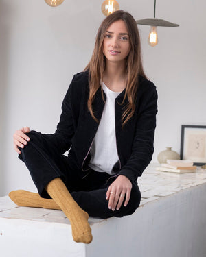 Le ZIPPY de chez SUNY est la pièce indispensable que vous ne quitterez pas de l'année, à la fois fit et chic ! Ici dans une belle couleur Noir, subtile mélange de jaune, de vert et de havane, c’est une couleur à la fois lumineuse et chaleureuse. Découvrez cette pièce dans d'autres couleurs: moutarde et violet.